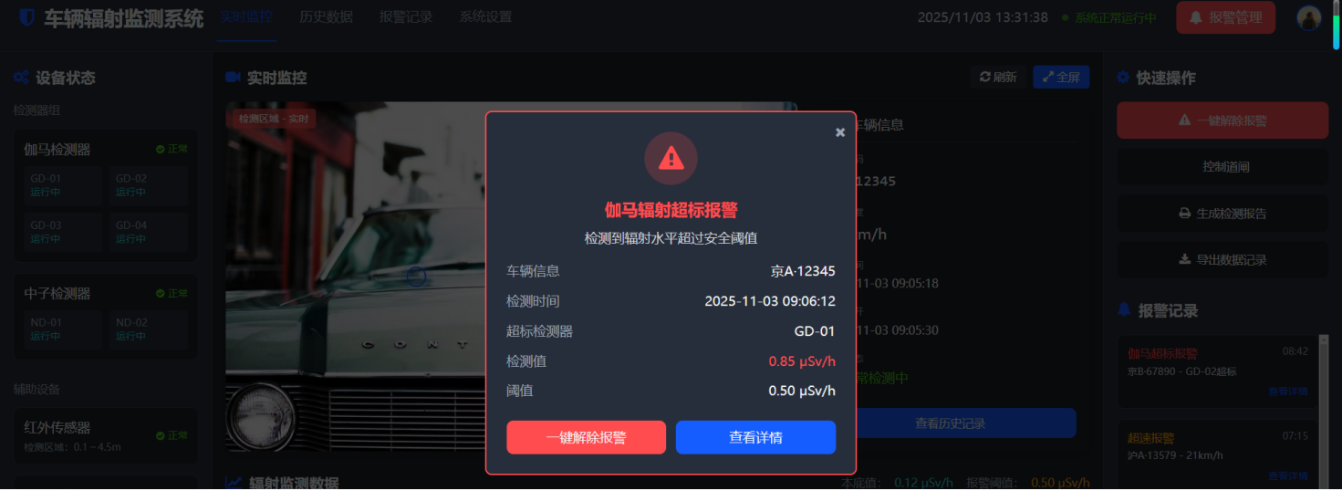 設備能接入海關管理網(wǎng),數(shù)據(jù)可接入“海關總署核輻射探測應用物流監(jiān)測子系統(tǒng)” |